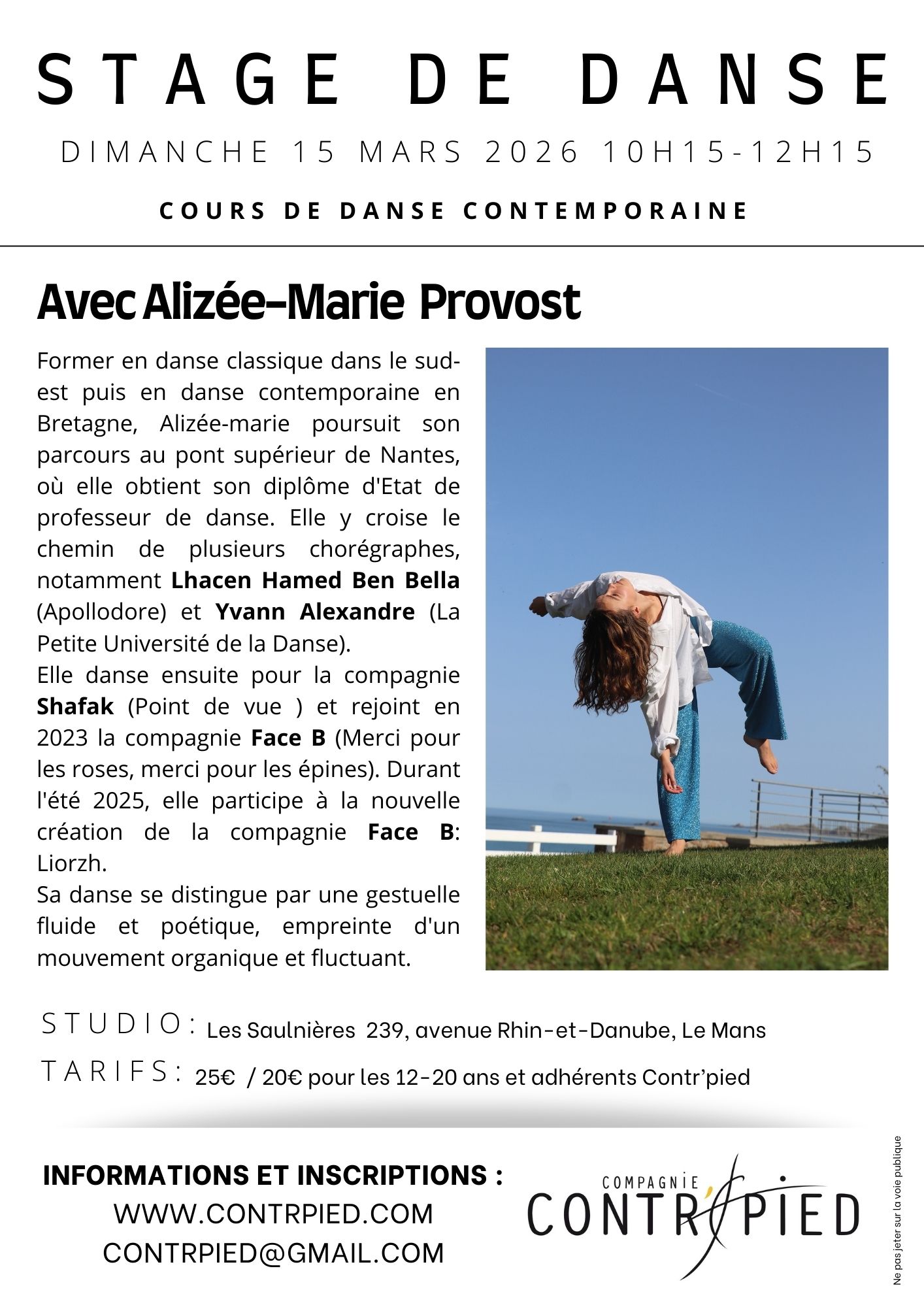 Stage de danse DIMANCHE 15 MARS 2026